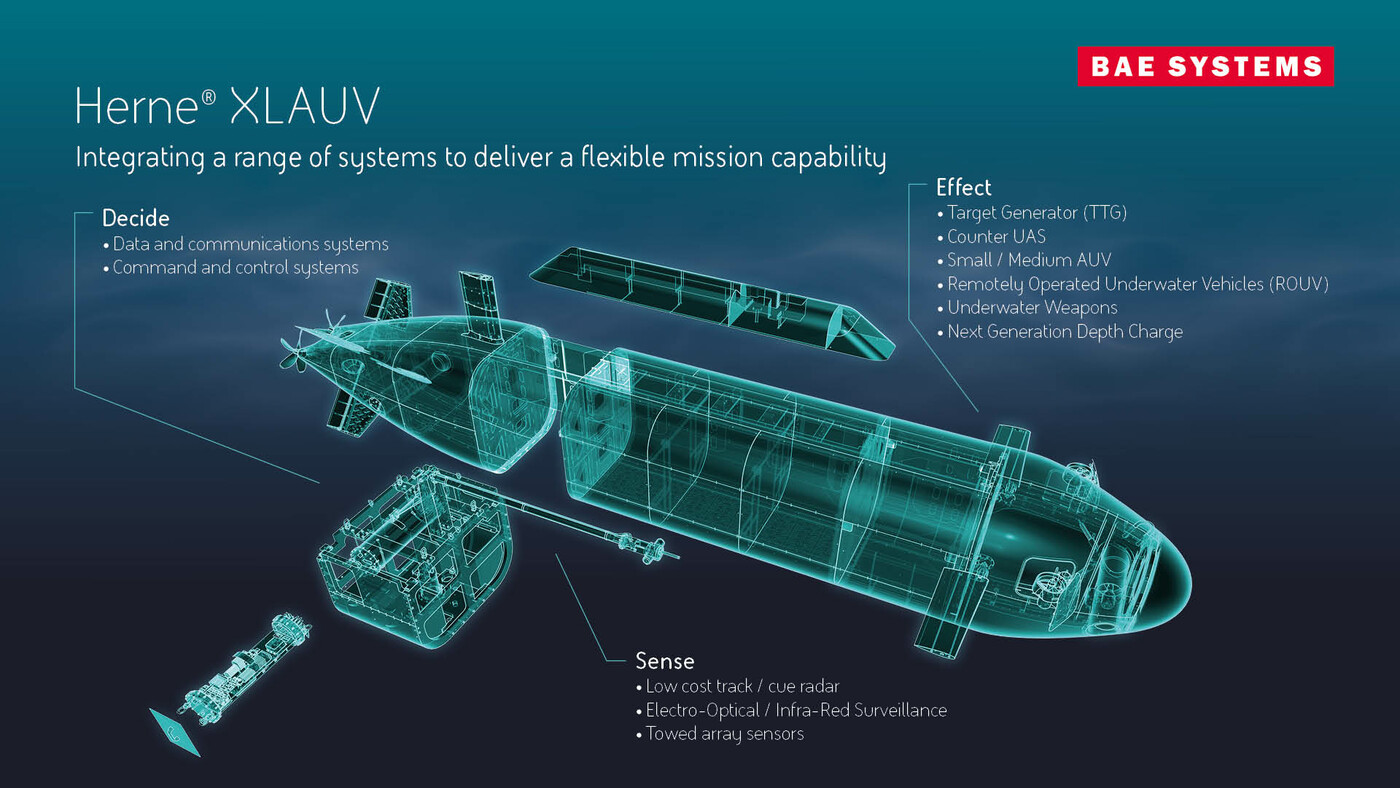 Zespół brytyjskich inżynierów z Portsmouth przeprowadził na wodach u południowych wybrzeży Anglii zakończony sukcesem pokaz nowego typu autonomicznej jednostki podwodnej, opracowanej do celów wojskowych. Jednostka o nazwie Herne, orkeślana jako bardzo duży autonomiczny pojazd podwodny (XLAUV), została skonfigurowana przez BAE Systems pod kątem umożliwienia siłom zbrojnym monitorowania i ochrony podwodnej infrastruktury na rozległych obszarach dna morskiego, wspierania walki z wrogimi okrętami podwodnymi i zapewnienia alternatywnego środka do wykonywania niejawnych zadań rozpoznawczych.