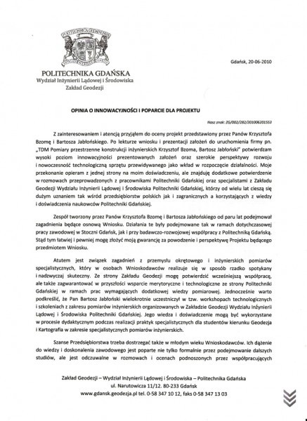 Spółka powstała w 2010 roku. Została założona przez inżynierów Oceanotechniki. Swoje doświadczenia w pomiarach konstrukcji stalowych od 2008 roku zdobywaliśmy w Stoczni Gdańsk S.A. Chęć rozwoju i realizacji własnych planów skłoniła nas do skorzystania z dotacji unijnej.