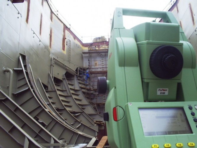 Wykorzystanie tachimetru elektronicznego daje możliwość precyzyjnego zdefiniowania kształtu mierzonego obiektu w postaci współrzędnych przestrzennych. Ułatwia to znacznie sterowanie jakością podczas procesu budowy jednostki. Pomaga przewidywać niezgodności kształtu i problemy podczas łączenia kolejnych części kadłuba oraz odpowiednio wcześnie im zaradzać. Po importowaniu z dokumentacji kadłubowej współrzędnych przestrzennych sekcji, bloku i wgraniu ich do instrumentu pomiarowego, wszelkie niezgodności można ustalić podczas pomiaru.
