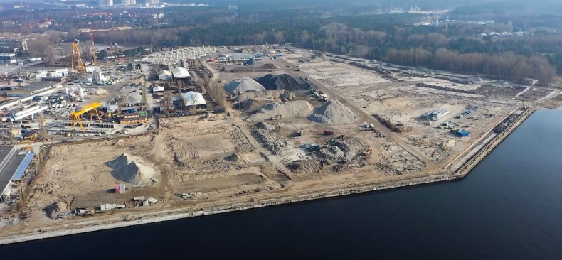 Roboty czerpalne poprzedziło oczyszczanie akwenu z ferromagnetyków i innych zalegających w dnie potencjalnie niebezpiecznych elementów pochodzenia wojskowego. W części lądowej także toczą się intensywne prace budowlane. Zniknęły dotychczasowe budowle, utwardzany jest teren oraz rozpoczęły się prace związane z budową budynku warsztatowego i administracyjno-biurowego. Kontynuowane są prace nad przygotowaniem nabrzeży.