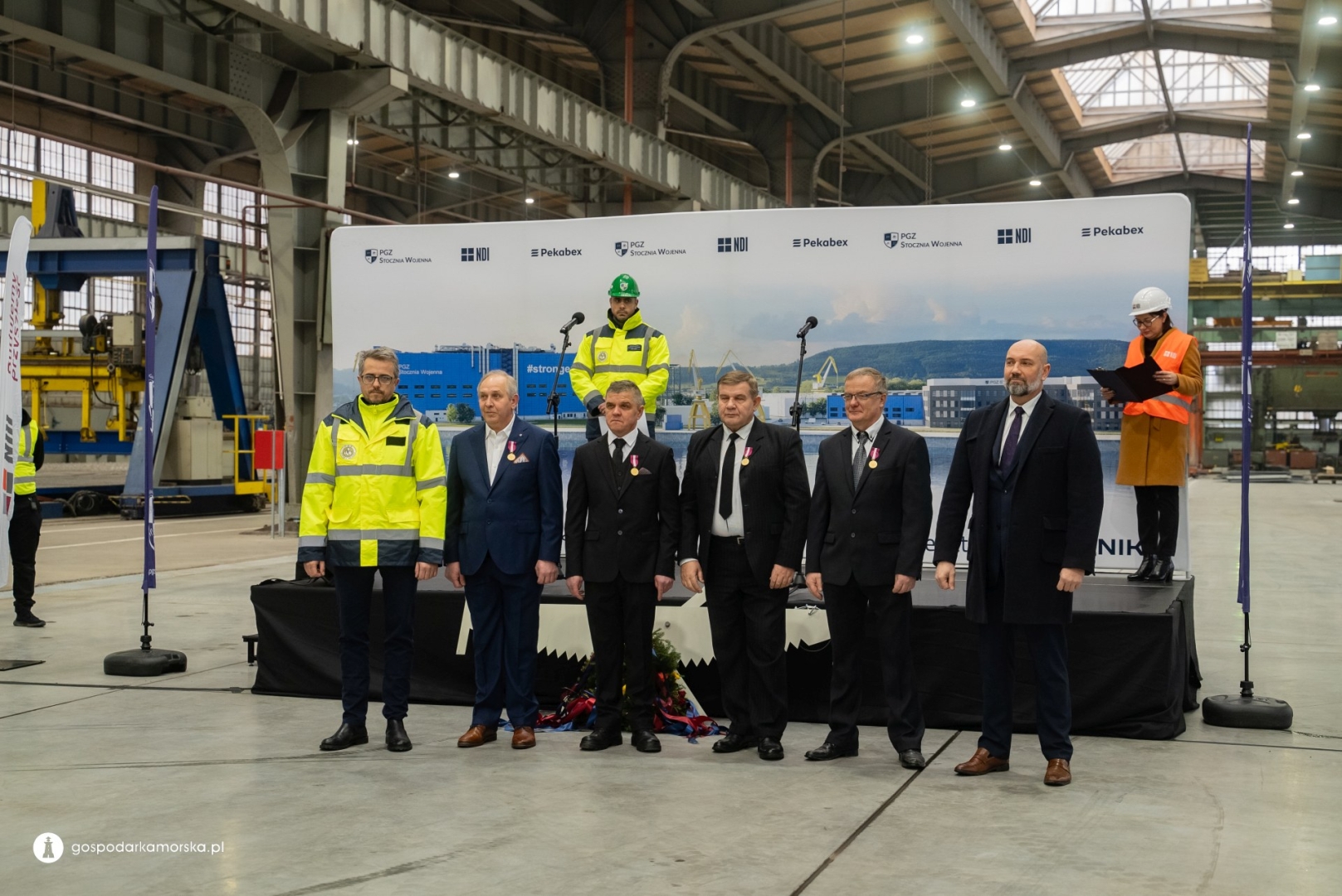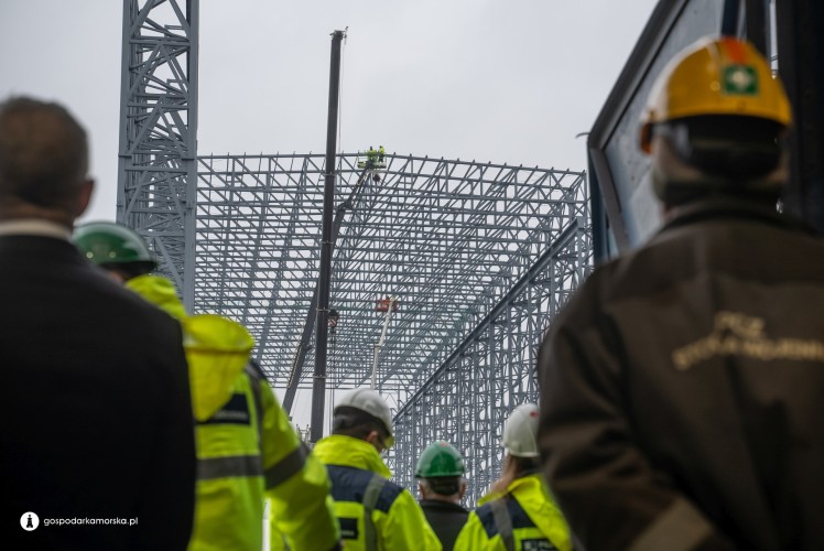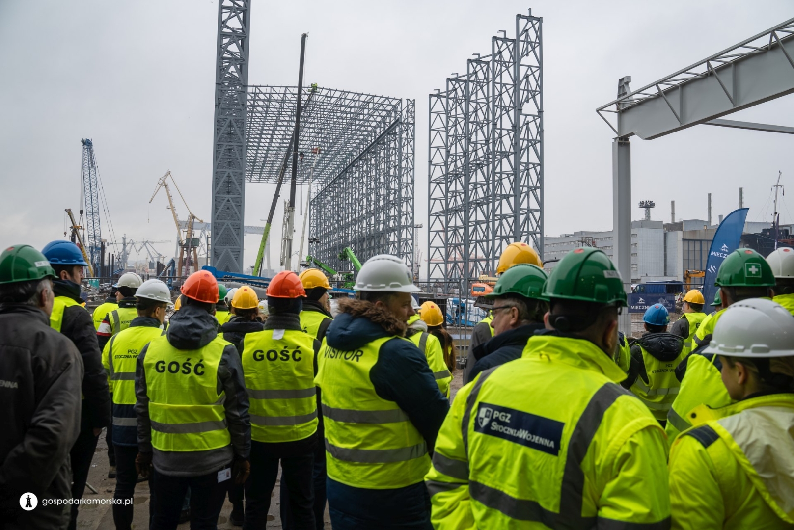 Z udziałem przedstawicieli stoczni, władz, wykonawców oraz wojskowej kadry miał miejsce symboliczny moment, świadczący o zakończeniu ważnego etapu budowy. Nowa infrastruktura jest kluczowa dla budowy i modernizacji okrętów, w tym przyszłych, wielozadaniowych fregat programu "Miecznik".