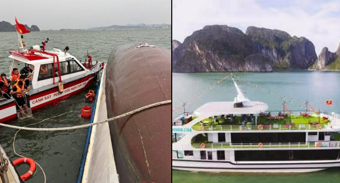 A tourist boat, Wonder Sea (2nd pic), capsized at around 1:30 p.m. today in Ha Long Bay with 48 passengers and 5 crew members on board. Navy rescuers have pulled 12 people out of the water alive, recovered 18 bodies, and are still searching for the remaining missing tourists 🙏 pic.twitter.com/EbD1oq3Ssy