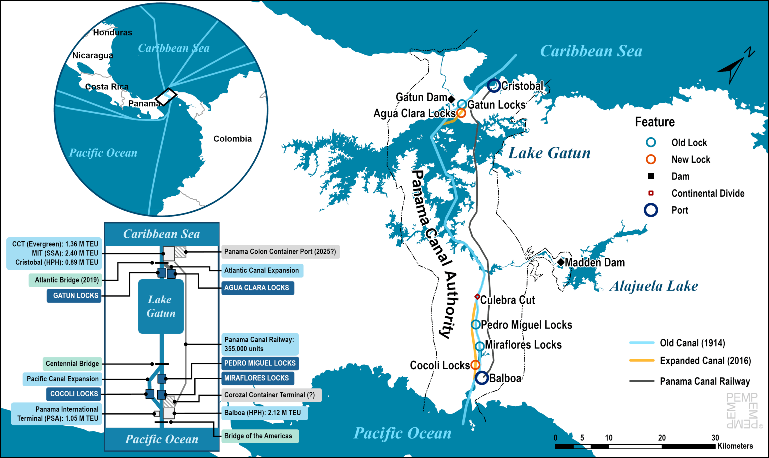 Mapa Kanału Panamskiego, źródło: porteconomicsmanagement.org