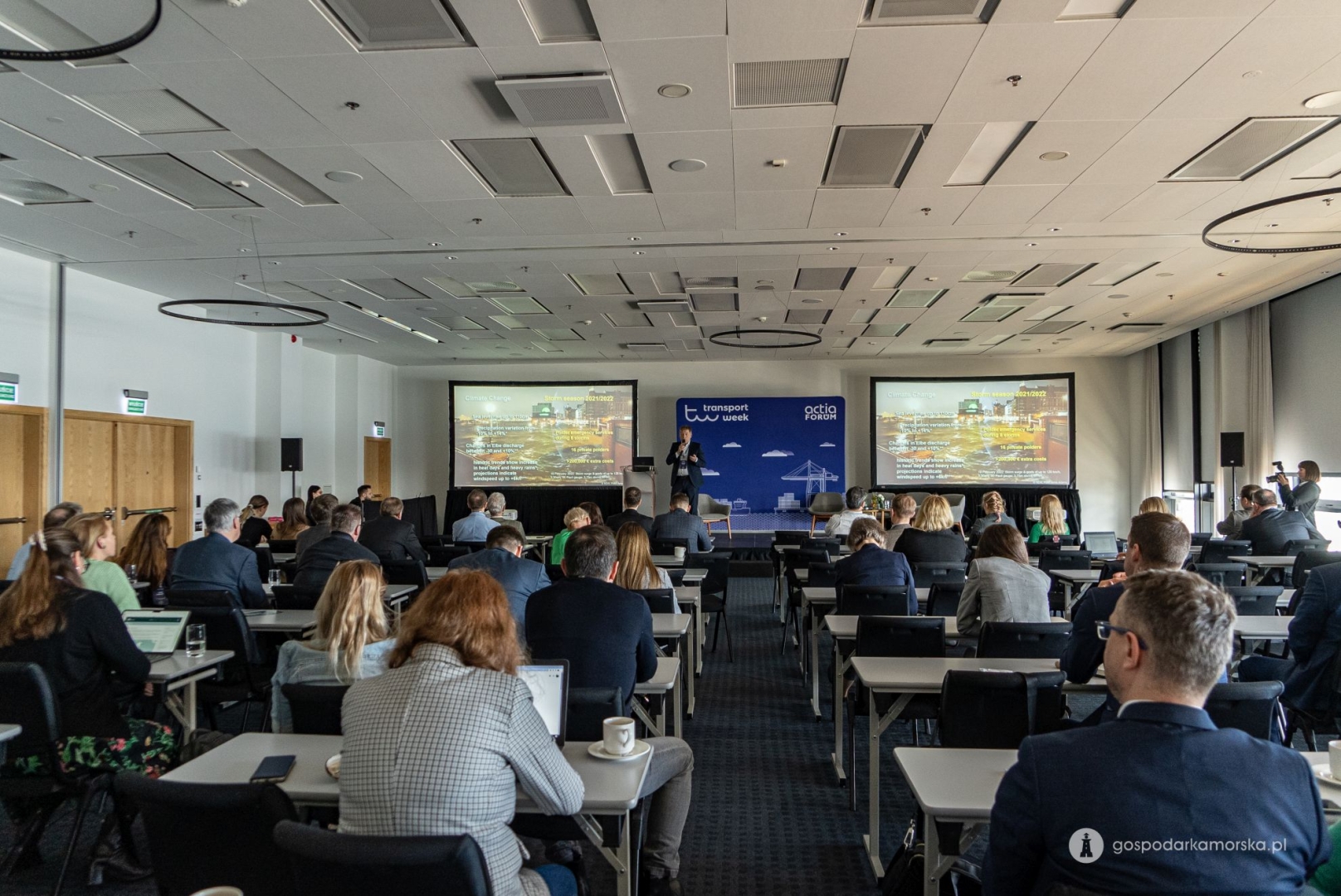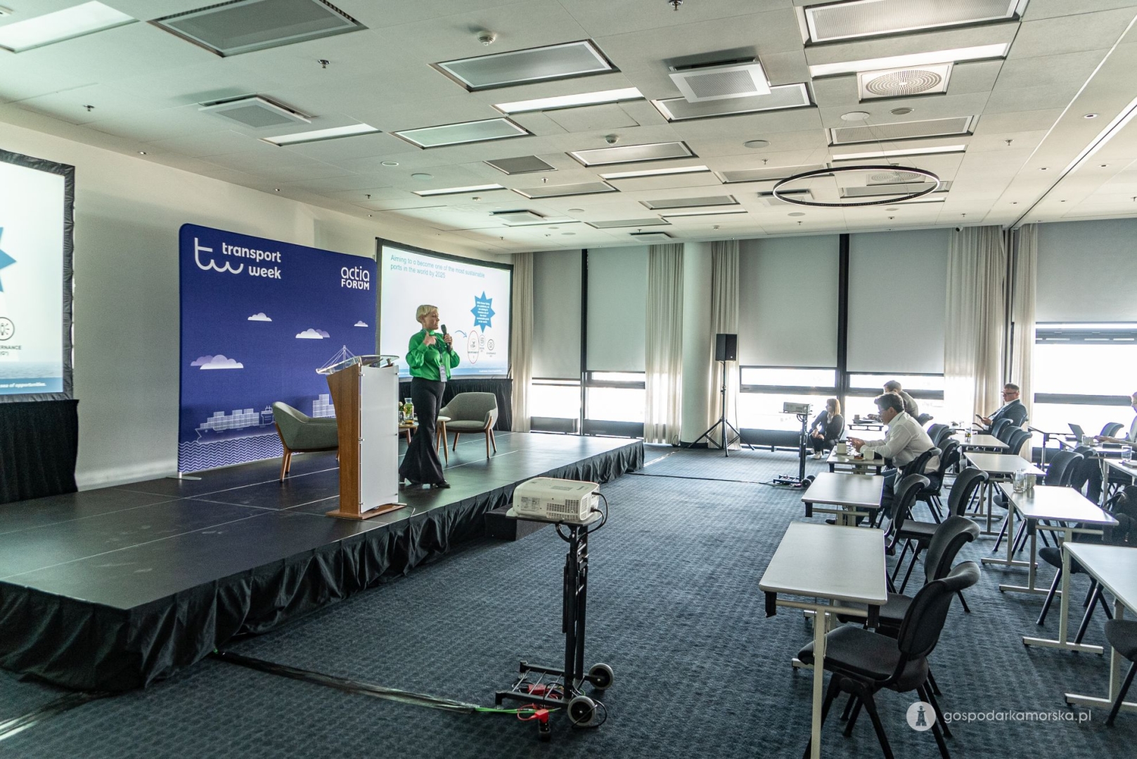 – W dniu dzisiejszym mamy konferencję, która dotyczy klimatu i dyskutujemy o strategiach bałtyckich portów w tym obszarze. Wiemy, czym jest zmiana klimatu. Każdy musi odegrać swoją rolę, żeby ten klimat chronić. Również porty. Z jednej strony mamy regulacje, które będą wchodzić, takie jak Fit for 55. Oprócz tego rozmawiamy o tym, jak porty planują redukcję, w co inwestują. Jest cała gama różnych dyskusji. Widzimy wyraźny trend elektryfikacji, czyli zmiany napędów diesla na elektryczny w różnych sprzętach portowych – opisuje Bogdan Ołdakowski, CEO Actia Forum, organizatora Transport Week, oraz sekretarz generalny Baltic Ports Organization.