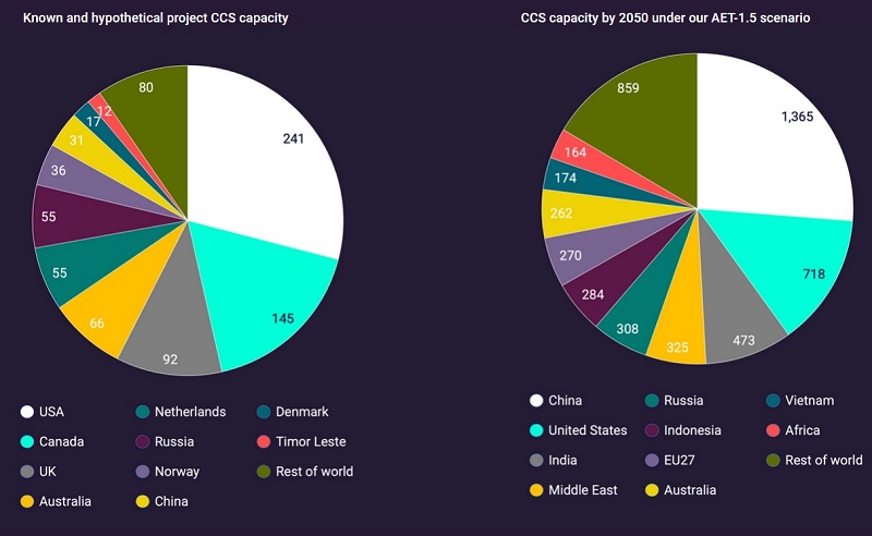 "Spodziewamy się, że globalna zdolność CCS wzrośnie do 2050 roku do poziomu od 2 Btpa do 6 Btpa. Dokładnie jak i gdzie to się stanie jest niejasne. Zakładamy, że wzrost ten będzie pochodził głównie z krajów, które będą miały źródła emisji w skali hubowej dostępne w pobliżu opcji składowania podpowierzchniowego. Operatorzy CCS będą oferować sekwestrację jako usługę dla emitentów" – stwierdził Latham.