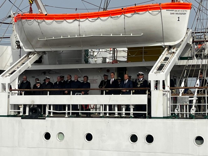 Premier Tusk, razem z ministrem infrastruktury Dariuszem Klimczakiem, wzięli udział w inauguracji roku akademickiego Uniwersytetu Morskiego w Gdyni, na pokładzie „Daru Młodzieży” przy Molo Południowym w Gdyni.