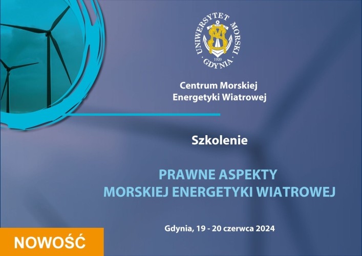 Już 19-20 czerwca na Uniwersytecie Morskim w Gdyni odbędzie się kolejne szkolenie z zakresu morskiej energetyki wiatrowej. Organizowane przez Centrum Morskiej Energetyki Wiatrowej UMG szkolenie dotyczyć będzie prawnych aspektów morskiej energetyki wiatrowej.