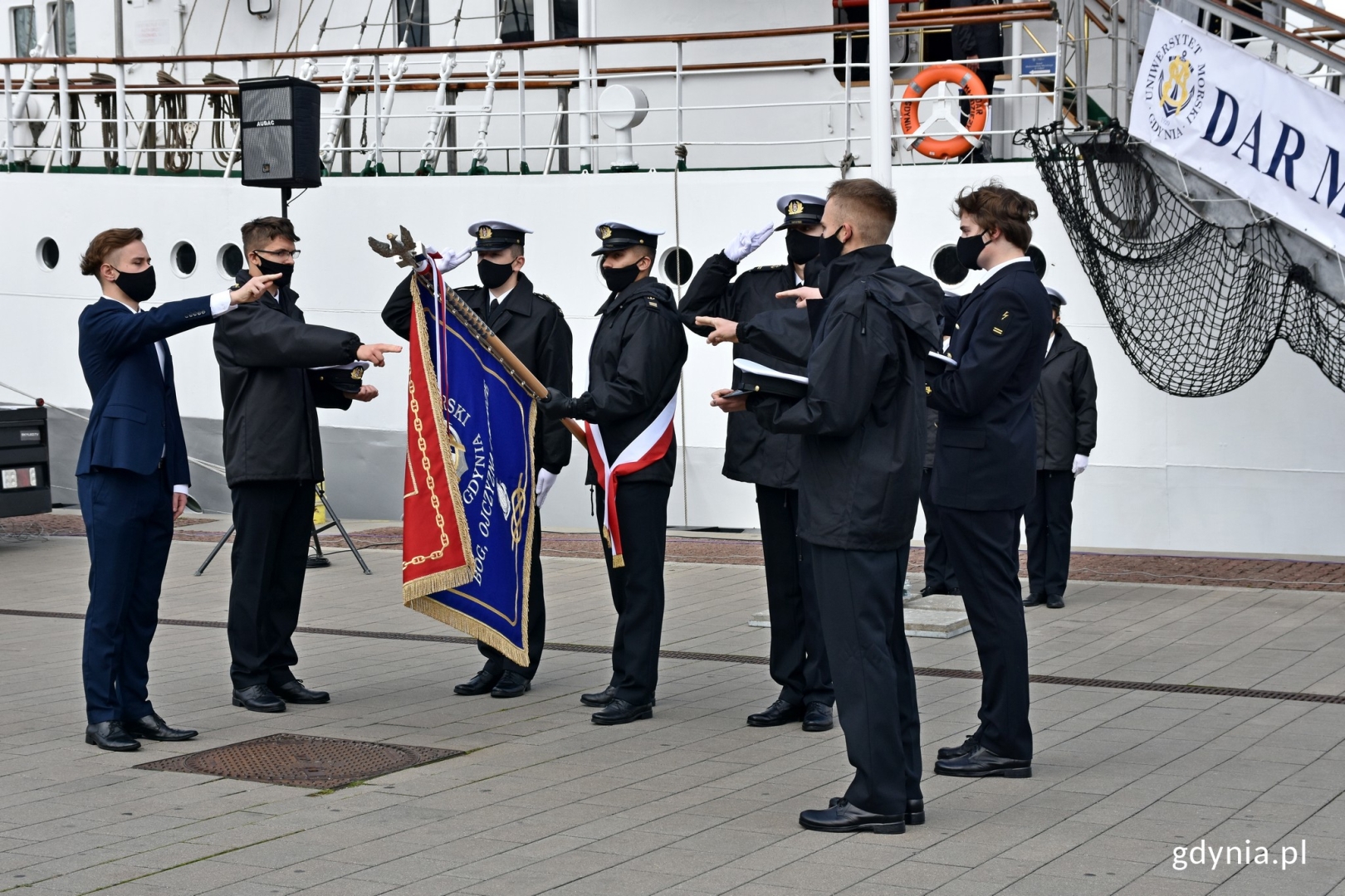 Nowy rok akademicki na Uniwersytecie Morskim w Gdyni rozpoczęty! Uczelnia zorganizowała uroczystą inaugurację na świeżym powietrzu. Zgodnie z tradycją nie mogło zabraknąć morskich akcentów, dlatego uroczystość odbyła się na żaglowcu „Dar Młodzieży” oraz przed jego pokładem. Oczywiście wszystko z zachowaniem reżimu sanitarnego. Ze względu na trwającą pandemię ograniczono liczbę uczestników uroczystości. Wszyscy chętni mogli też oglądać transmisję online z wydarzenia.