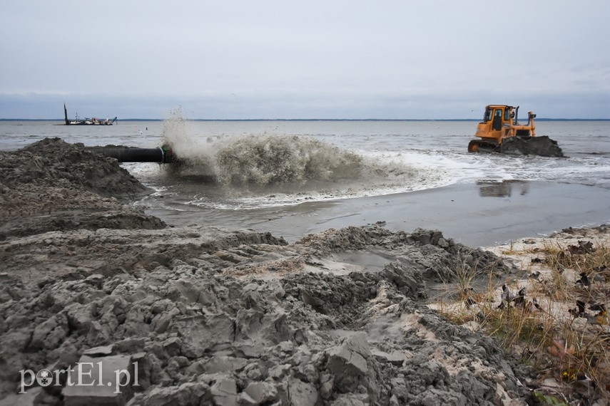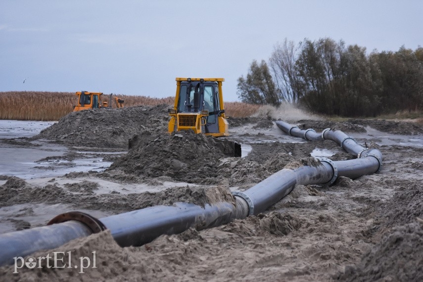 Plaża w Kadynach będzie poszerzona, a dno Zalewu Wiślanego w tym miejscu – jak zapewnia Urząd Morski w Gdyni - „odpowiednio ukształtowane”. Prace w tym miejscu mają potrwać do 7 grudnia. Zobacz zdjęcia.