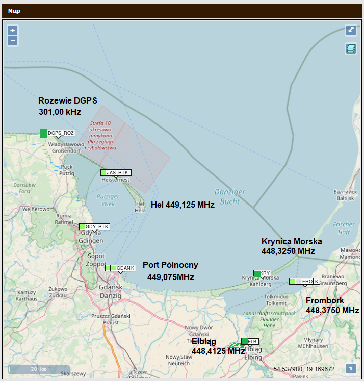 - stacji nadawczych poprawek RTK w paśmie UHF we Fromborku, w Krynicy Morskiej, oraz w Elblągu.