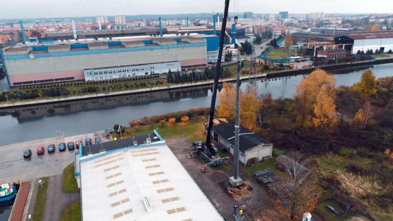 Budowa masztu strunobetonowego w Bazie Technicznej Elbląg
