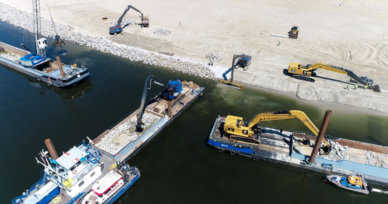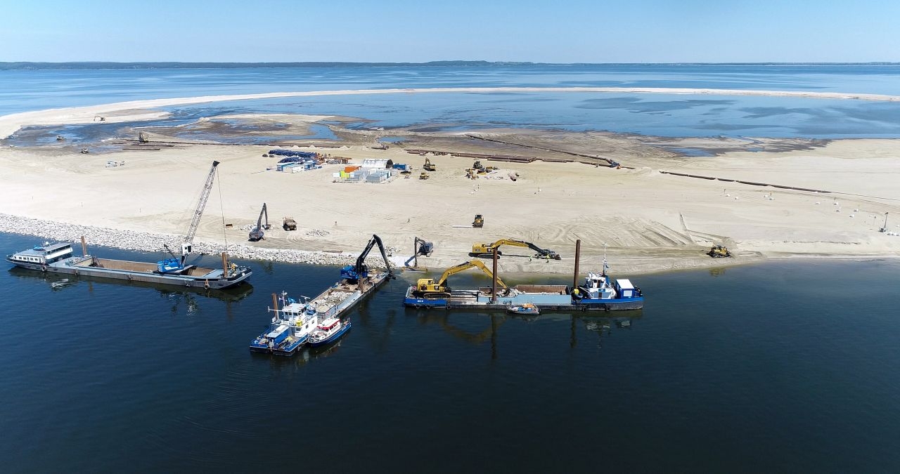 Budowa sztucznych wysp na Zalewie Szczecińskim, w ramach pogłębiania toru wodnego Świnoujście-Szczecin do głębokości 12,5 metra. / fot. UM Szczecin