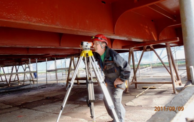 • Pomiary prostoliniowości stępki podczas remontu statku