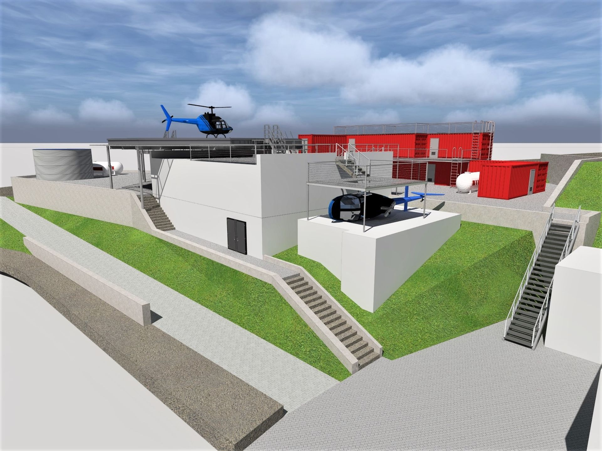 To niejedyny z symulatorów. Kolejnym z nich jest śmigłowiec wywrócony na bok, w którym odbędą się symulacje ewakuacji z rozbitej i wywróconej maszyny. Infrastruktura Fire Field będzie zawierać bogatą paletę scenariuszy pożarów, dzięki tak wyposażonej przestrzeni, kursanci będą mogli trenować na realistycznym lądowisku z prawdziwymi płomieniami, w maksymalnie realistycznych scenariuszach pożarów.