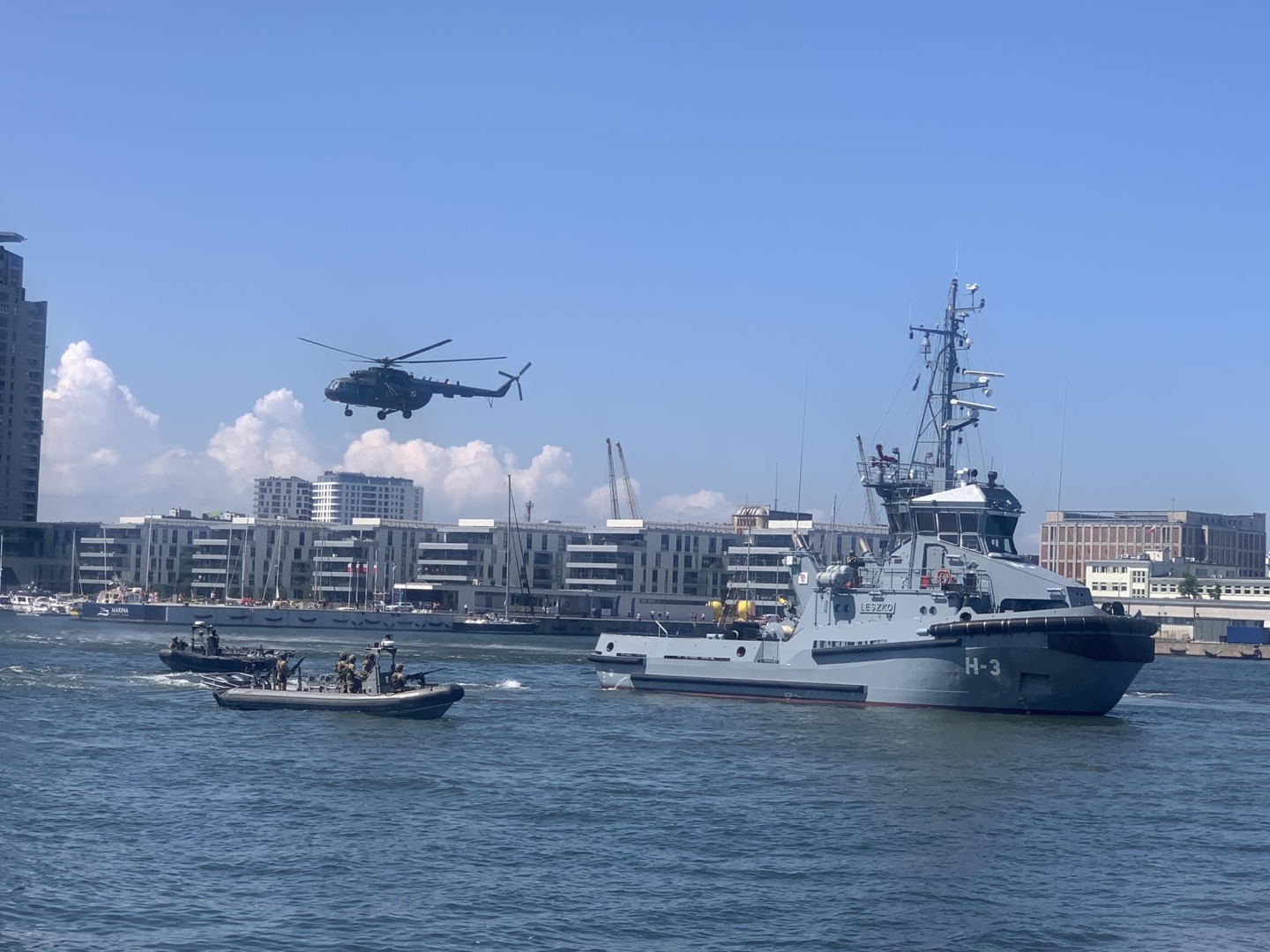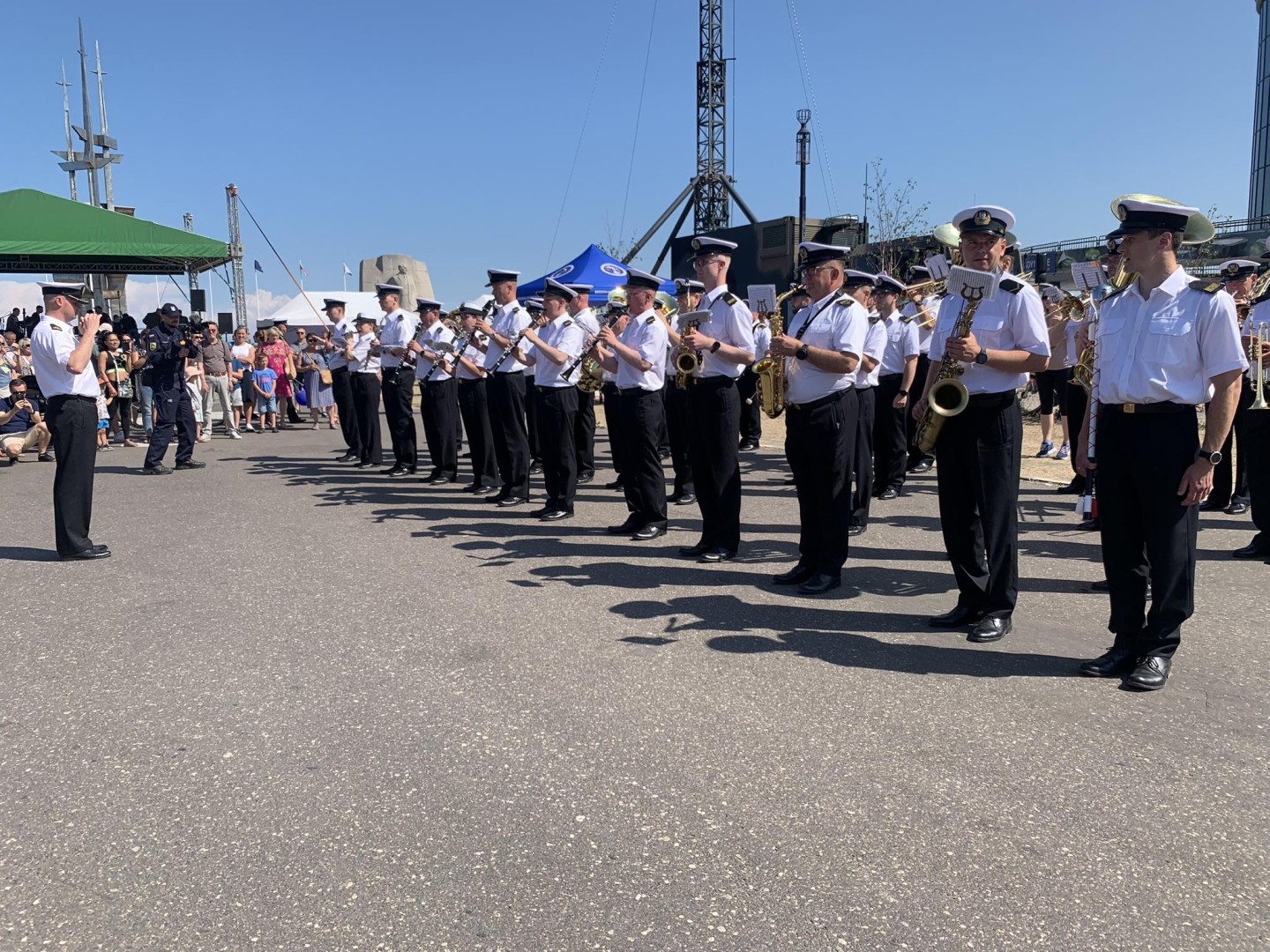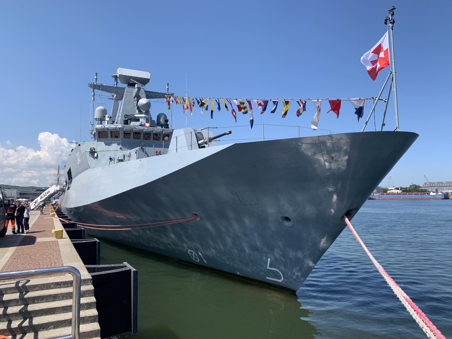 Fot. Służby Prasowe 8. FOWNiemało atrakcji przygotowano następnego dnia w Gdyni. Przy Nabrzeżu Pomorskim zacumowały korweta patrolowa ORP Ślązak, mały okręt rakietowy ORP Orkan i niszczyciel min ORP Mewa, na których pokład można było wejść. Ponadto wystawiono sprzęt używany przez jednostki 3. Flotylli Okrętów, a także stoiska informacyjne, w tym dotyczące wstąpienia do zasadniczej i zawodowej służby wojskowej. W ramach wydarzenia miał miejsce pokaz musztry paradnej w wykonaniu Kompanii Reprezentacyjnej Marynarki Wojennej, a także odbyły się koncerty Orkiestry Reprezentacyjnej Marynarki Wojennej, Orkiestry Wojskowej w Elblągu, a także zespołów z klubu 3. FO oraz Klubu MW "Riwiera".
