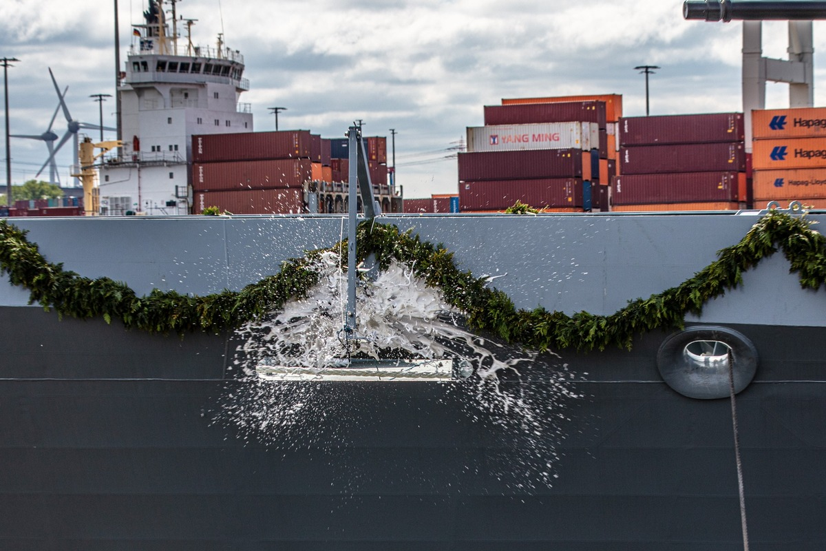 - Ten doskonały duch zespołowy, intensywna praca ekspertów we wspólnych grupach roboczych i oczywiście wspólne zarządzanie ryzykiem są nadal niezbędne i decydujące o sukcesie czynnikiem tego projektu - podkreślił kadm. Andreas Czerwinski, szef Departamentu Morskiego Federalnego Urzędu Bundeswehry ds. sprzętu, technologii informatycznych i wsparcia serwisowego (Bundesamt für Ausrüstung, Informationstechnik und Nutzung der Bundeswehr, BAAINBw), podczas ceremonii chrztu.