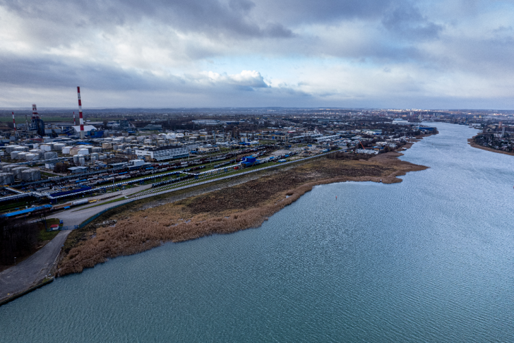 Terminal na Martwej Wiśle wzmocni możliwości logistyczne gdańskiej rafinerii umożliwiając przeładunek ok. 2 mln ton produktów paliwowych rocznie. Na teren budowy dotarły pierwsze cztery ramiona nalewcze. W pozycji zaparkowanej każda jednostka ma 18 m wysokości, a ich łączna waga wynosi prawie 100 ton. Pozostałe cztery zostaną dostarczone do końca czerwca. Docelowo, urządzenia o przepustowości sięgającej nawet 500 m sześc. na godzinę, będą wykorzystywane przy stanowiskach przeładunkowych do obsługi zbiornikowców. Zakończenie budowy jest zaplanowane na drugą połowę przyszłego roku. Inwestycja zarówno zwiększy możliwości dostaw biokomponentów, jak i usprawni logistykę transportową pomiędzy rafinerią a tankowcami. Wraz z uruchomieniem terminalu, koncern planuje wprowadzenie do eksploatacji bunkierki, obsługującej porty Trójmiasta w zakresie dostaw paliw konwencjonalnych i biopaliw.