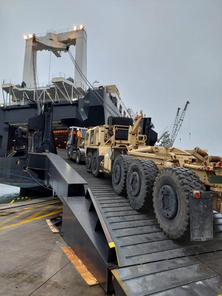 Załadunek realizowano na Terminalu Oliwskim 6 stycznia br. Było to blisko 940 sztuk sprzętu w postaci m.in. pojazdów bojowych i technicznych, biorących udział w ćwiczeniach wojskowych, oraz wykonujących zadania wpisane w ich zwyczajową służbę. Załadunek był prowadzony na transportowiec USNS Pililaau (T-AKR-304) typu Bob Hope. Jest to jednostka pomocnicza (United States Naval Ship), która choć znajduje się w w wyposażeniu amerykańskiej floty, z nazewniczego punktu widzenia nie jest jednak okrętem, gdyż te są określane jako United States Ship (USS). W odróżnieniu od tych drugich, załogę jednostki transportowej stanowią w zdecydowanej mierze cywile, a nie zawodowi wojskowi.