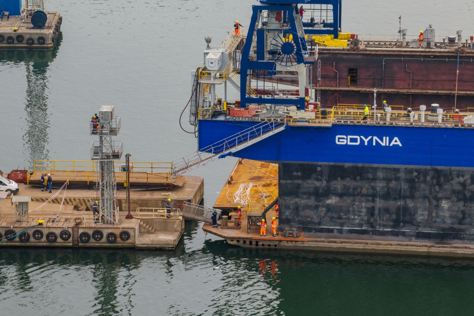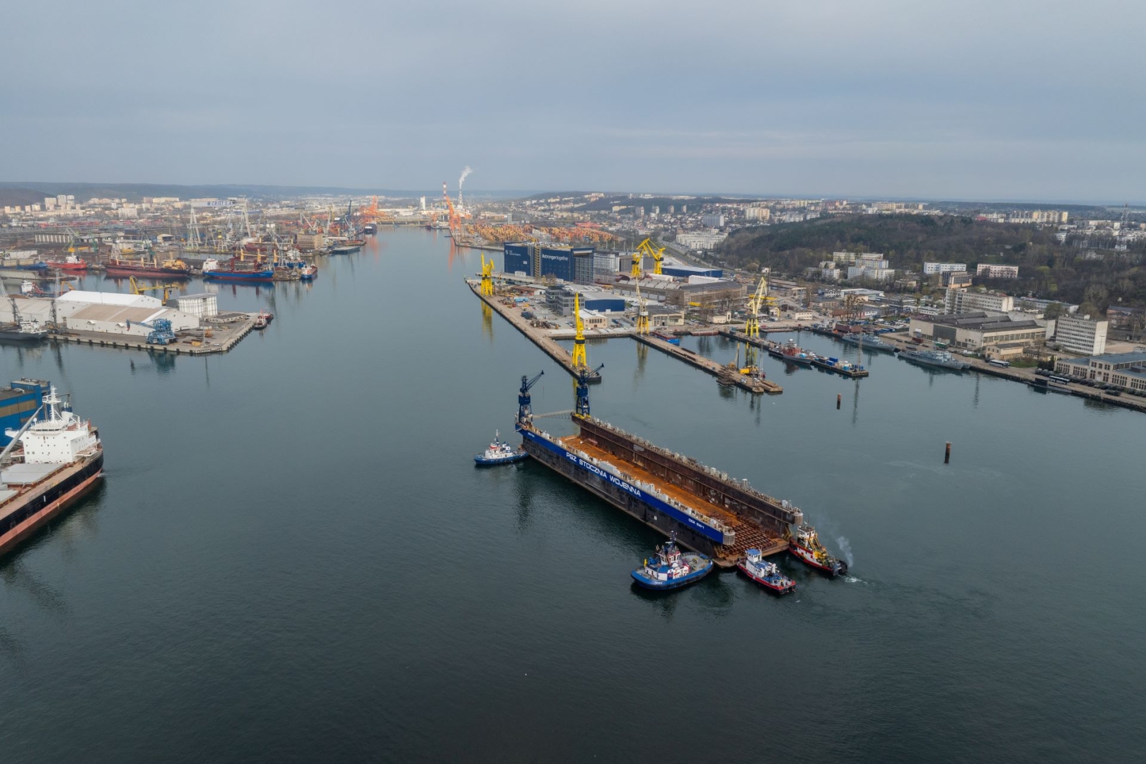 - Pierwszym etapem, który rozpoczął się około 7 rano w dniu dzisiejszym, było odcumowanie doku pływającego od dalb. Następnie w asyście dwóch holowników i dwóch pchaczy jednostka wyszła na obrotnicę numer 2, następnie przez kanał portowy dotarła do docelowego miejsca - relacjonuje Tomasz Wawrzyński,