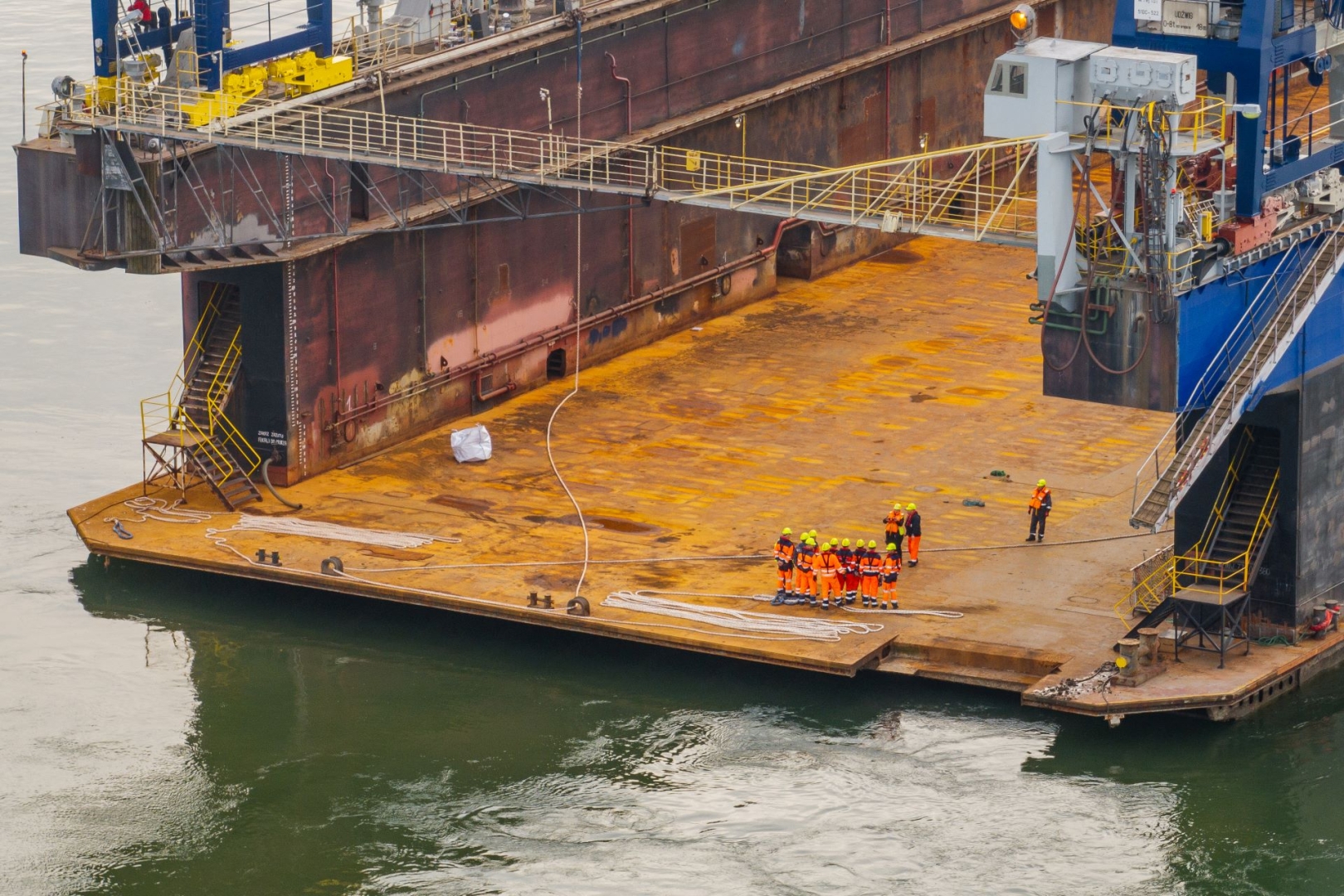 - Był to newralgiczny moment, najbardziej wyczekiwany przez nas wszystkich - czy te dwoje uszu, które znajdują się na konstrukcji doku, zejdą się jeden do jednego z wykonanymi przez nas i przez generalnego wykonawcę dalbami. Wszystko udało się w 100% - mówi Wawrzyński.