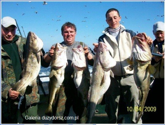 Moje polowanie na dorsza w 100% oparte jest na połowach na wrakach i z doświadczenia wiem, że im głębiej leży wrak tym większe kryje w swoim wnętrzu ryby. Jednak wyjęcie z wody rekordowego okazu nie jest wcale łatwe. Aby tego dokonać trzeba posiadać przede wszystkim solidny kij i mocną plecionkę o wytrzymałości minimum 40 kg. Niejeden zapyta po co taki mocny sprzęt. Odpowiedź jest prosta - ponieważ łowimy na wrakach i o sukcesie decyduje kilkanaście pierwszych sekund po zacięciu ryby. Musimy za wszelką cenę jak najszybciej oderwać dorsza od wraka, w przeciwnym wypadku rybę z reguły tracimy, ponieważ duży, silny dorsz bardzo szybko i łatwo wpływa do jednej z niezliczonych kryjówek na każdym z wraków. W takim przypadku jesteśmy po prostu bezsilni - dorsza trzeba częstokroć zerwać razem z kotwiczką. Jeżeli w pierwszych sekundach nie pozwolimy mu na ucieczkę, wtedy istnieją duże szanse na to, że po 2-3 minutach ciężkiej pracy ujrzymy go na powierzchni wody. Z mojego wędkarskiego doświadczenia wynika, że co trzeci okaz zostaje pokonany - reszta dużych ryb nadal rośnie na wrakach i może przy innej okazji dostarczyć nam wielu niezapomnianych wrażeń i dużej dawki adrenaliny.