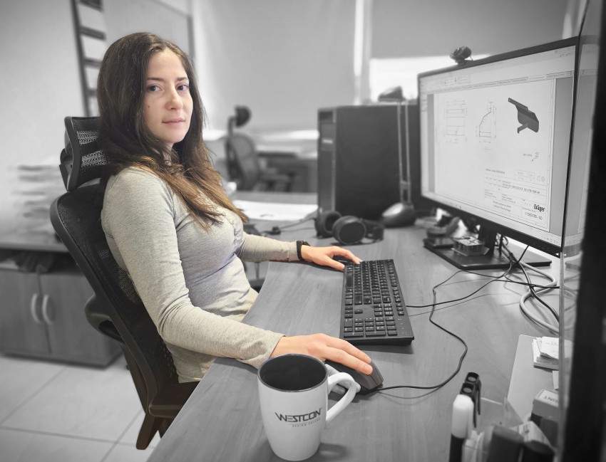 Westcon Design Poland to zespół 40 projektantów, z których aż jedna czwarta to kobiety. Firma dynamicznie się rozwija, stawiając na młode talenty i nowe spojrzenie na branżę. Jednym z kluczowych elementów tej strategii jest otwartość na programy stażowe, które dają szansę na zdobycie praktycznego doświadczenia i rozwój w zawodzie. To właśnie w ten sposób do zespołu dołączyła Monika Płuciennik, projektantka w dziale Machinery and Piping.