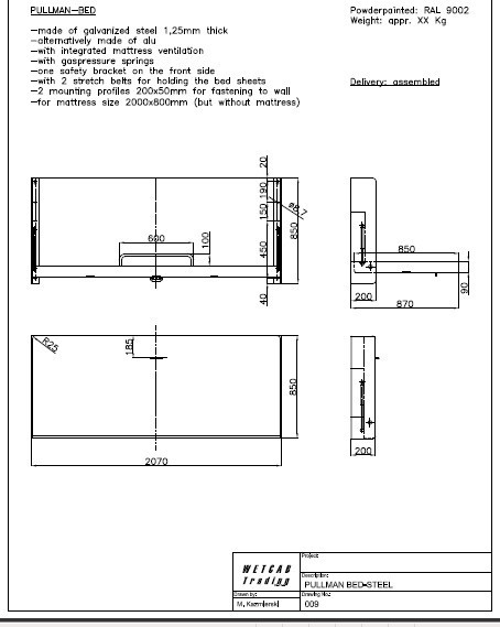 Wetcab Trading - Meble stalowe: Łóżko wahadłowe / Łóżko pulman / Łóżko piętrowe / Podwójna szafka z ławką / Kozetka / Łóżko szpitalne / Drabinka / Szafka apteczna