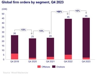 Rynki zachodnie przyczyniły się do rekordowego poziomu zamówień, dodając 55 GW mocy w 2023 roku, z czego 19 GW w Europie