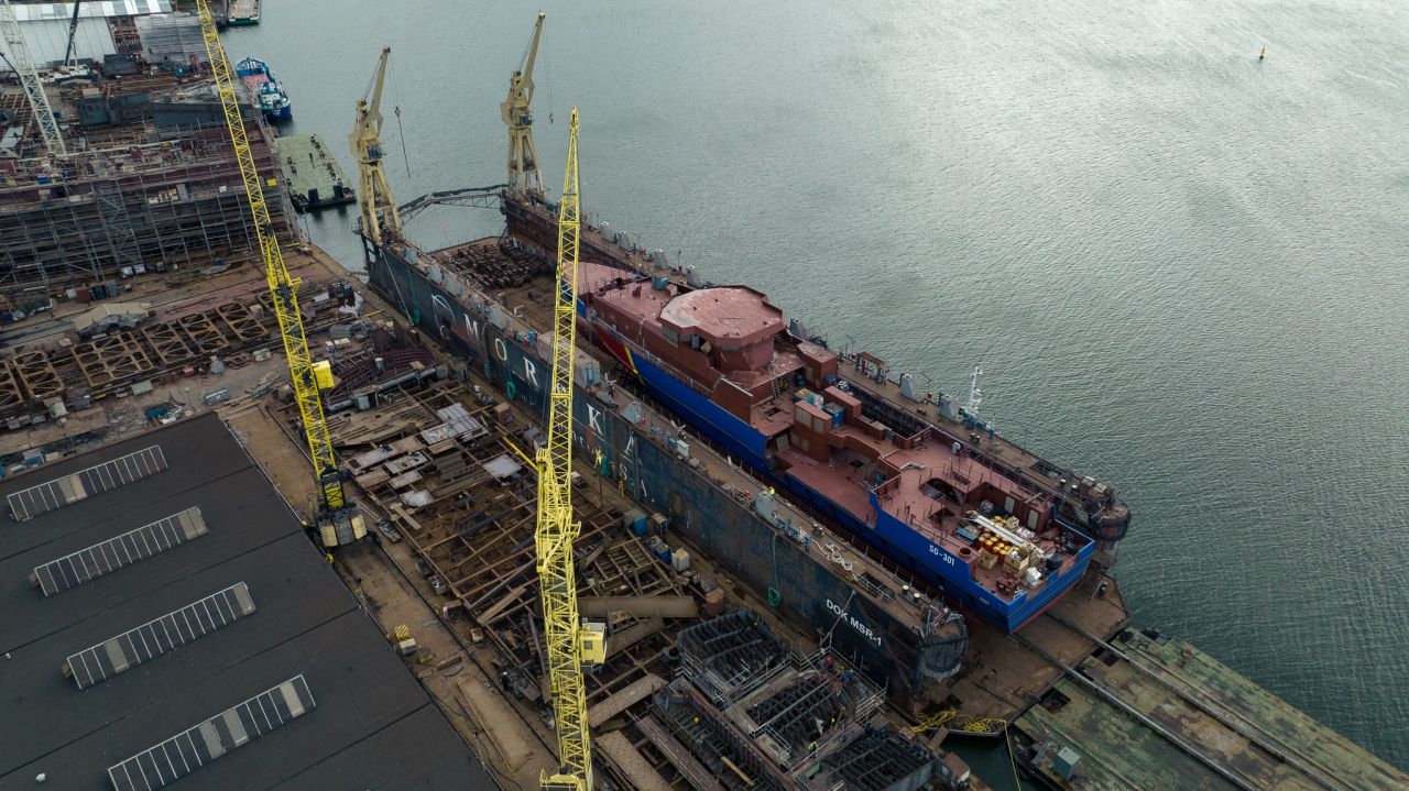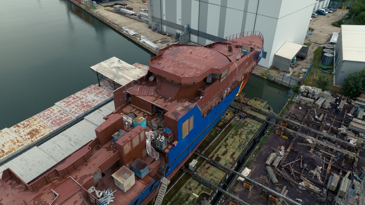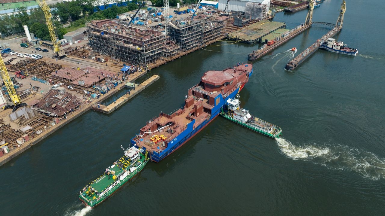 kadłub wraz z nadbudową i częściowym wyposażeniem został zwodowany –