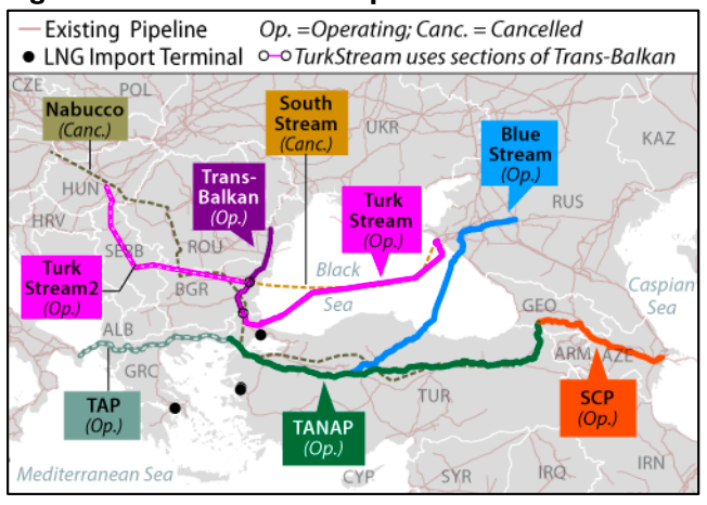 Prócz transportu ropy i produktów ropopochodnych, region Morza Czarnego charakteryzuje się obecnością gazociągów istotnych dla regionalnego bezpieczeństwa energetycznego. Możemy wymienić m.in. Błękitny Potok (BlueStream), Turecki Potok (TurkStream), Gazociąg Transadriatycki (TAP) czy też Gazociąg Transanatolijski (TANAP).