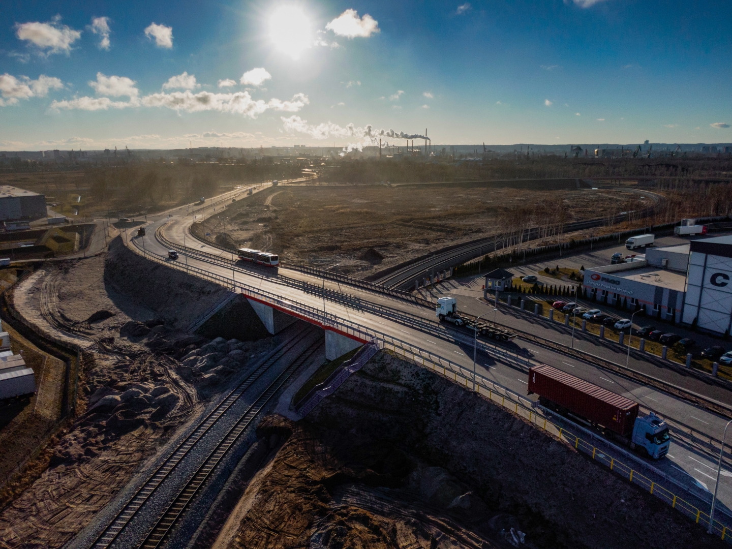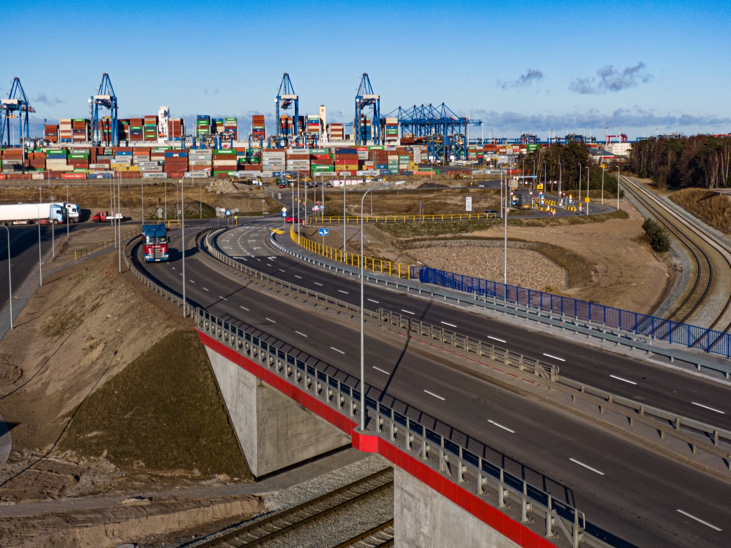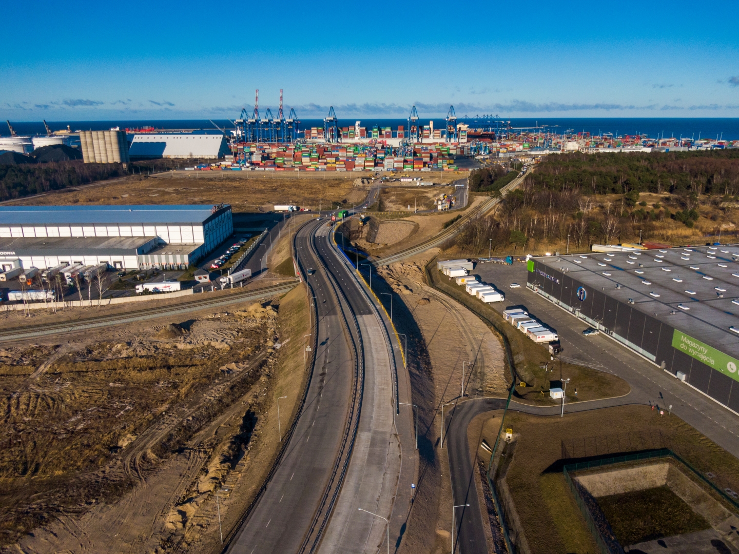 10 km dróg, 7 km torów, 14 rozjazdów 7 obiektów inżynierskich w tym wiadukty drogowe i przepusty ochronne na rurociągach paliwowych PERN i LOTOS, parking buforowy dla aut ciężarowych – czyli kluczowa inwestycja Portu Gdańsk o łącznej wartości 166 mln zł netto, jest na ukończeniu. Generalny wykonawca sopocka firma NDI ma do wykonania już tylko prace porządkowe. Obecnie trwają prace odbiorowe. W środę (17.03.) po południu pierwsze auta ciężarowe przejechały po docelowym układzie drogowym na ulicy Kontenerowej. Jej przekrój to aktualnie dwie jezdnie po dwa pasy ruchu.