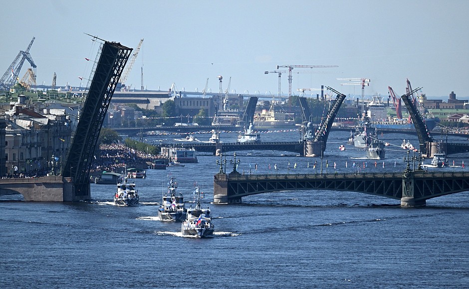 W tym roku w Głównej Paradzie Marynarki Wojennej Rosji na Newie i na redzie Kronsztadu wzięło udział 45 okrętów bojowych, kanonierek i okrętów podwodnych Floty Północnej, Pacyfiku, Bałtyckiej i Czarnomorskiej oraz około 3 000 żołnierzy.