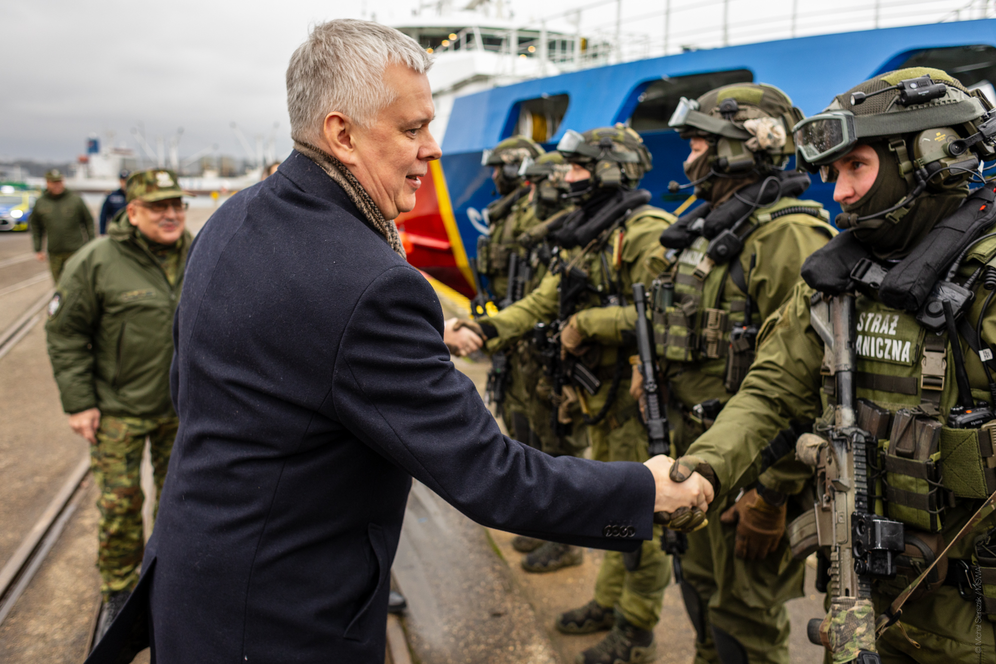 Ministrowie wzięli też udział w rejsie patrolowym, który odbył się w asyście jednostki patrolowo-interwencyjnej SG-215 i funkcjonariuszy Wydziału Zabezpieczenia Działań na szybkiej łodzi typu RIB. W jegogoście zostali zapoznani ze specyfiką działań Straży Granicznej w ochronie morskiej granicy państwowej, w tym zewnętrznej granicy Unii Europejskiej, i na polskich obszarach morskich, z uwzględnieniem wsparcia w ochronie infrastruktury krytycznej.