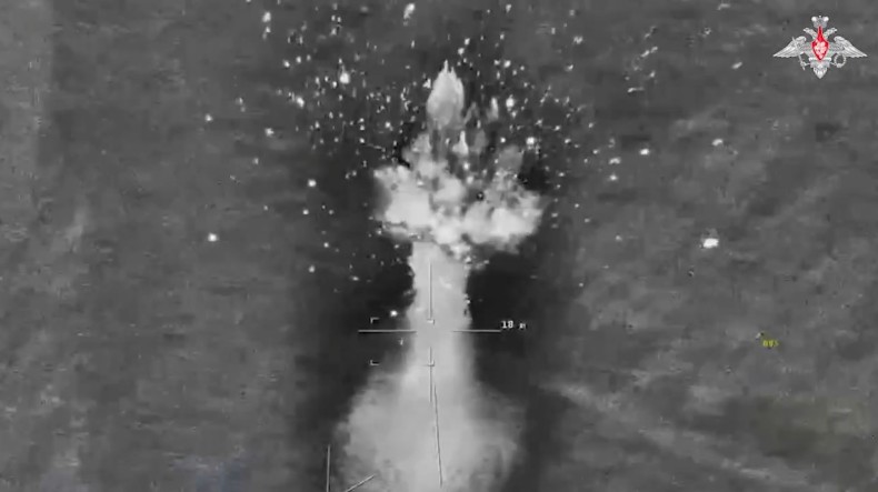 nagranie wydaje się pokazywać, jak dron Orion niszczy „Magurę” na Morzu