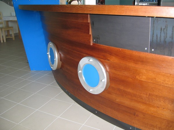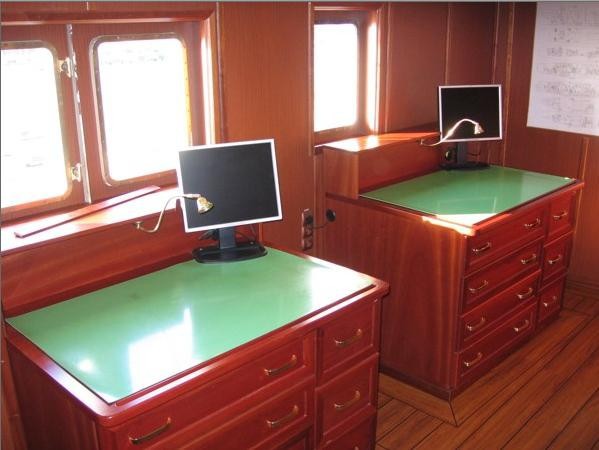 Firma WOMEB realizuje zamówienia na wyposażenie jednostek pływających. Wykonujemy meble drewniane, oklejane naturalną okleiną lub laminatami renomowanych producentów światowych.