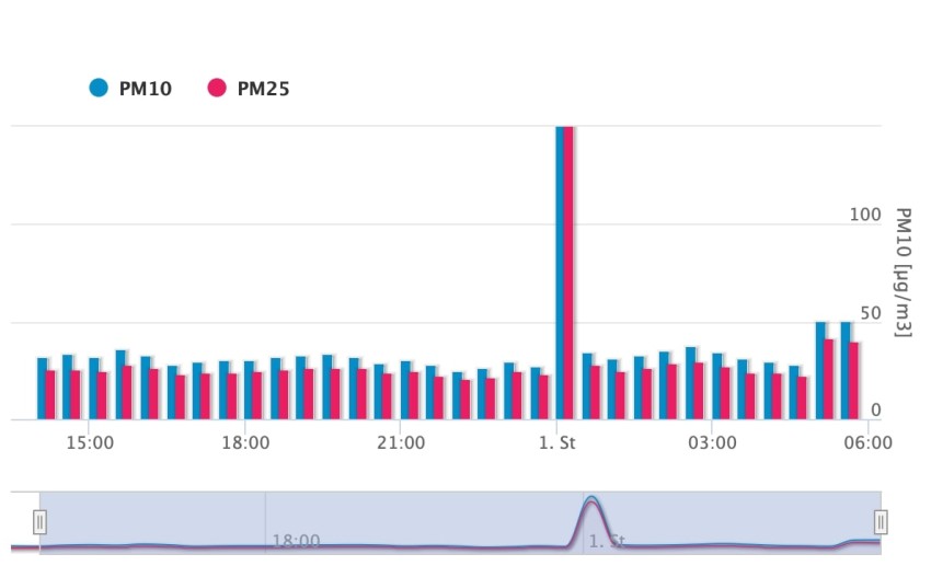 W ostatnią noc minionego roku firma SeaData, będąca ekspertem w dziedzinie monitorowania danych środowiskowych, zaobserwowała znaczący spadek jakości powietrza (wzrost zawartości pyłów zawieszonych PM10/PM2.5 w powietrzu). To zjawisko, odnotowane dokładnie o północy, gdy entuzjastyczne tłumy witają Nowy Rok, było ściśle powiązane z intensywnym użytkowaniem fajerwerków.