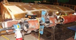 Przeprowadzamy mobilną obróbkę linii wałów śrubowych, obróbkę połączeń w sterach i we flapach.