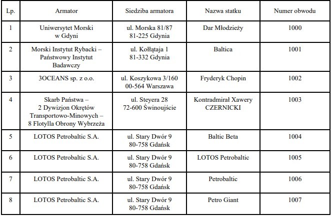 Przedstawiamy wykaz obwodów głosowania na polskich statkach morskich: