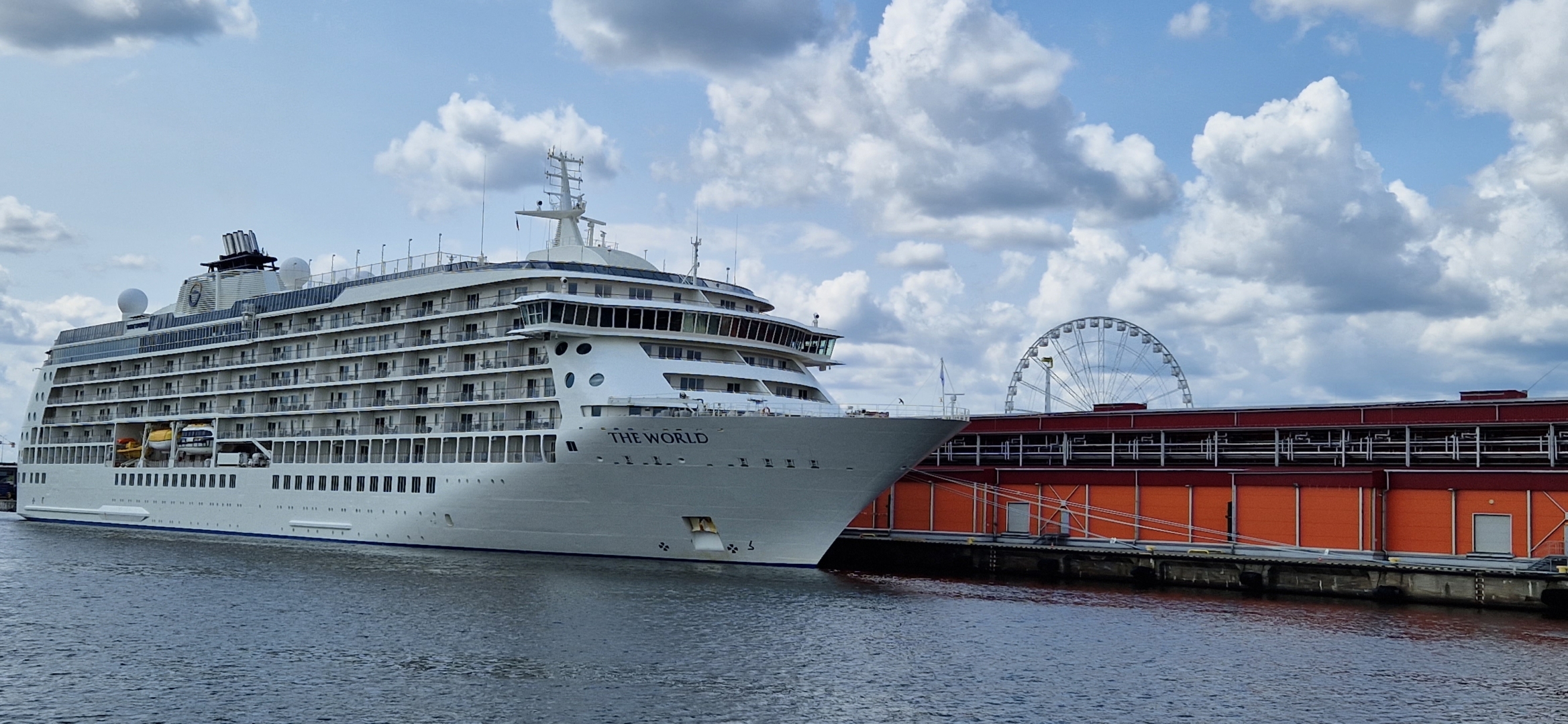 Do szczecińskiego portu zawinął dzisiaj rano wycieczkowiec The World. Statek zacumował przy Nabrzeżu Bułgarskim Centrum Logistycznego GRYF Sp. z o.o., gdzie będzie stacjonował do niedzieli.