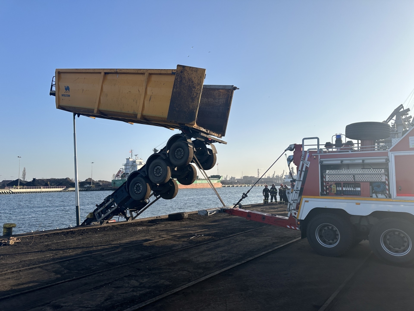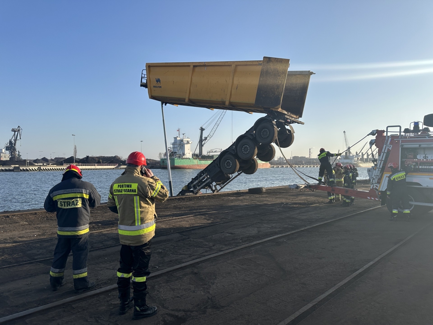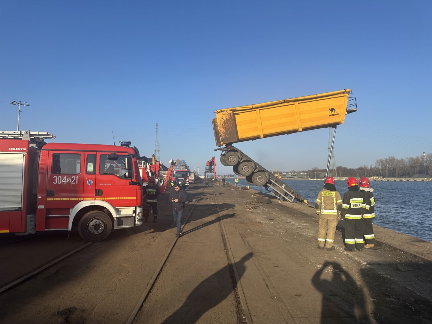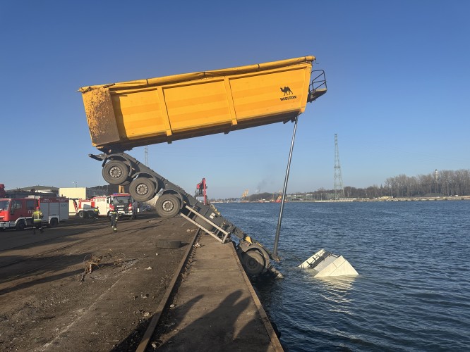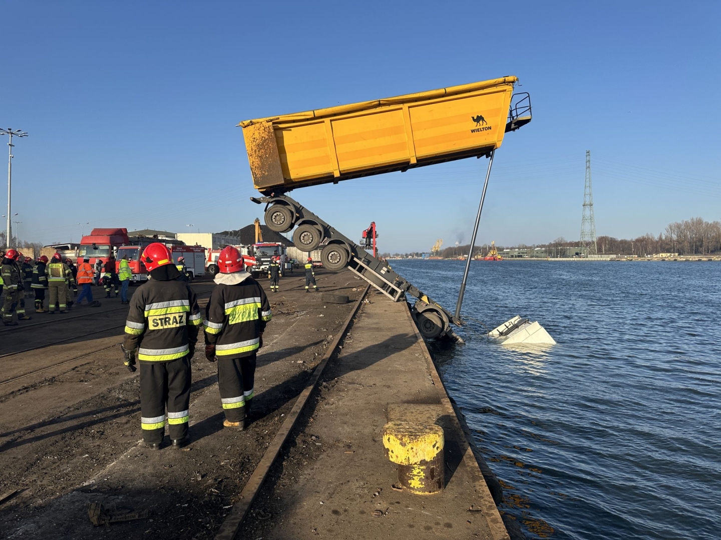 W Porcie Gdańsk doszło do niebezpiecznego wypadku - pojazd ciężarowy częściowo spadł z nabrzeża do wody. Nikomu nic się nie stało.