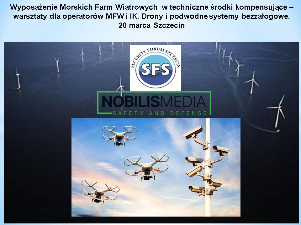 Nobilis Media zaprasza 20 marca na konferencję Security Forum Szczecin: Wyposażenie Morskich Farm Wiatrowych w techniczne środki kompensujące – warsztaty dla operatorów MFW. Drony i podwodne systemy bezzałogowe wspierające bezpieczeństwo MFW i IK.