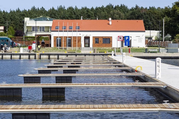 Nowa przystań powstała z prefabrykowanych pomostów pływających z trapami zejściowymi,
