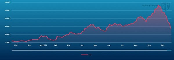 Wykres Baltic Dry Index od listopada 2020/ źródło: The Baltic Exchange