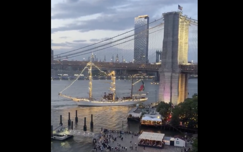 Earlier tonight, the Mexican Navy tall ship Cuauhtémoc lost power and crashed into the Brooklyn Bridge.