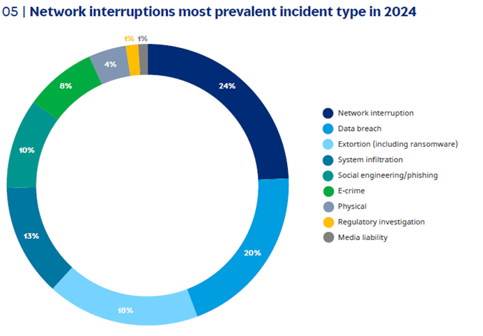 Wzrasta znaczenie incydentów niezłośliwych, które w 2024 r. stanowiły 28% wszystkich zgłoszeń. Kluczowymi czynnikami, które to powodują, są operacyjna zależność od technologii oraz wzajemna łączność systemów IT i OT.