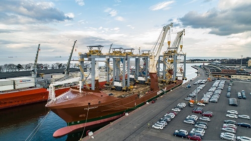Suwnice załadowano na pokład należącego do armatora Spieliethoff statku Palmgracht (długość 168m, szerokość 26m, zanurzenie 7,5m). Polskim przedstawicielem armatora jest firma Transfennica Polska z Gdyni. Statek to udźwigowiony drobnicowiec ciężarowy wielorakiego zastosowania, który został zbudowany w 2010r.