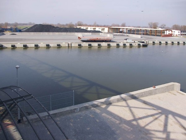 - Zasobnia na ładunki sypkie: Wymiary 40,0 x 107,0 m, służy do przechowywania ładunków sypkich (węgiel, materiały