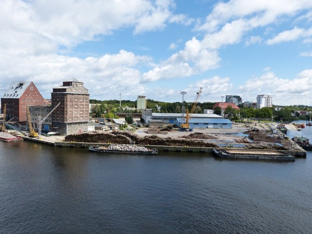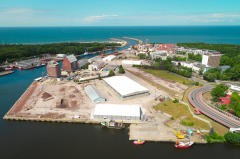 Na terenie, na którym realizowana jest funkcja handlowa obsługiwane są statki o długości do 100 metrów oraz zanurzeniu do 4,7 metra. Łączna powierzchnia terenów składowych tego obszaru wynosi ok. 50 tys. m2, powierzchnia magazynów ok. 6 tys. m2, powierzchnia biurowa ok. 2 tys. m2, a pojemność dwóch elewatorów zbożowych ok. 6 tys. ton. Port handlowy posiada pełną infrastrukturę, tj. sieci energetyczne wysokiego napięcia, punkty poboru wody, oświetlenie i bocznicę kolejową, a ana jego terenie swoje siedziby posiadają m.in. Urząd Celny, Państwowy Graniczny Inspektor Sanitarny i Straż Graniczna. Port Handlowy stanowi istotny element systemu transportowego na szlakach transportowych prowadzących od Skandynawii po środkową Europę, a uwarunkowania geograficzne oraz posiadany potencjał infrastrukturalny, tworzą platformę dla rozwoju wielu gałęzi gospodarki.