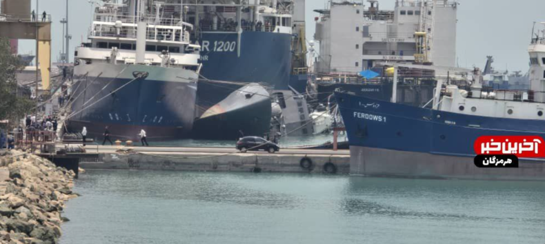 Some images have been posted by local media in Hormozgan province showing the light frigate IRIS Sahand capsized in the port of Bandar Abbas