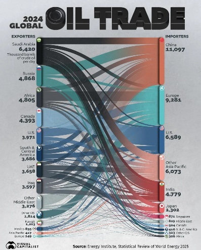 Światowy handel ropą w 2024. Grafika: Visual Capitalist
